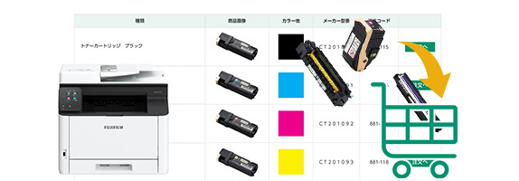 いつもご利用いただいている商品のサイズ違いや、機種に対応した消耗品を簡単にご注文いただけます。