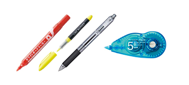 水性/油性マーカー、修正テープ、蛍光マーカーなど