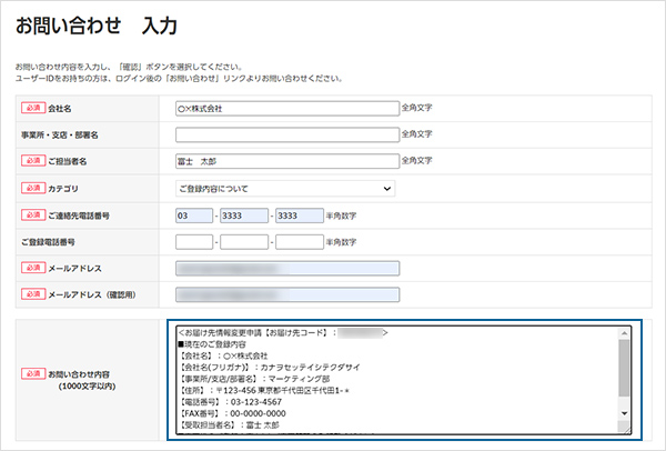 お届け先情報(販売窓口による登録済みお届け先情報)の住所情報・事業所・部署名・受取担当者・電話番号・FAX等のご変更依頼は以下の手順でご依頼ください。